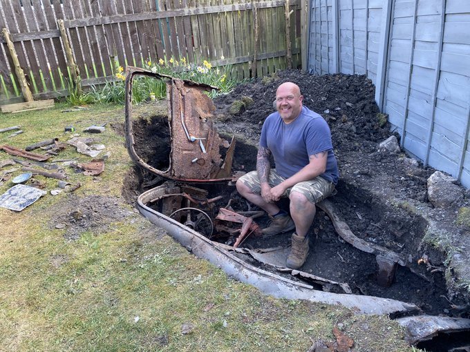 El hecho sucedió el viernes pasado en Heckmondwike, en el condado de Yorkshire, Inglaterra. John Brayshaw, de 40 años, se mudó a su actual vivienda hace seis meses y en los últimos días decidió arreglar el patio trasero de la misma. Sin embargo, poco después de comenzar a cavar el suelo, se topó con algo duro que estaba bajo el césped y resultó ser un automóvil viejo.