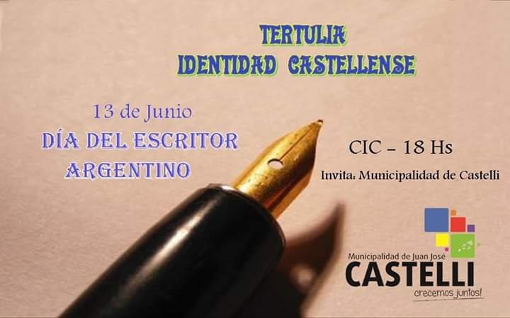 La Municipalidad de Juan José Castelli invita a la Tertulia «Identidad Castellense» que se llevará a cabo en el marco del DÃa del Escritor Argentino el jueves 13 de junio a las 18 hs en el Centro Integrador Comunitario -CIC-