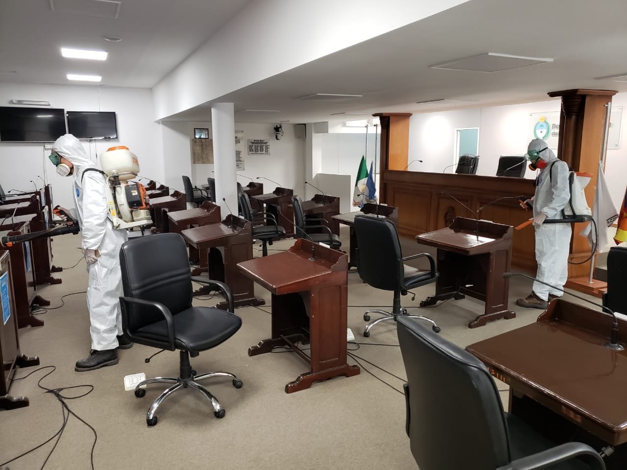 Una de las disposiciones principales del presidente de la Cámara de Diputados, Hugo Sager, fue la desinfección total de los edificios legislativos (Güemes 140, Brown 520, José María Paz 160 y 170), tarea que estuvo a cargo de una empresa especializada, que consistió en la desinfección total, limpieza profunda y posterior sanitización de todos los ambientes como pasillos, pisos, escaleras, ascensores, baños y puertas; también del mobiliario: sillas, escritorios, armarios, teclados y monitores; y de toda otra superficie que requiriera higiene y desinfección.