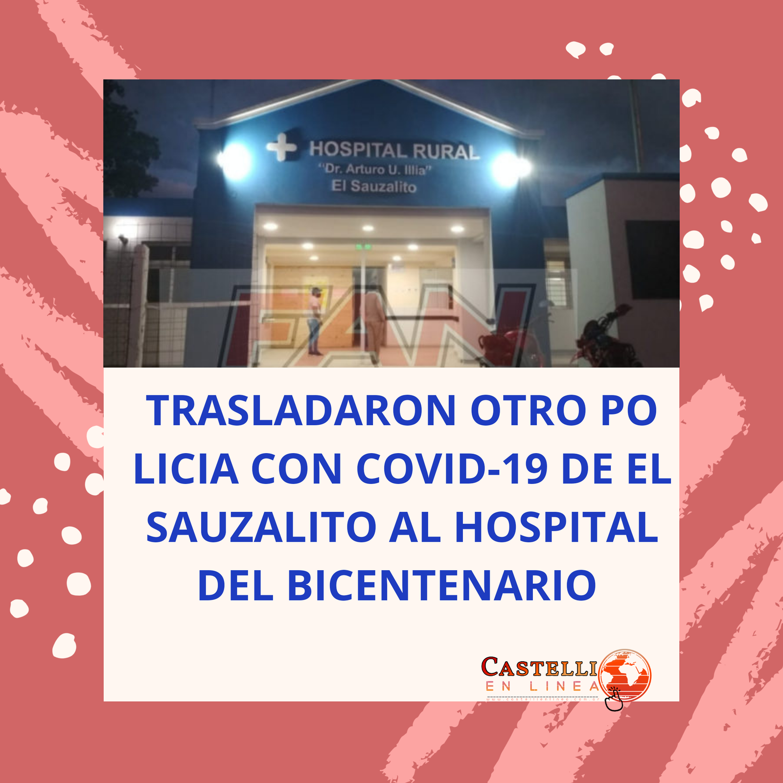 Este 2 de julio, a las 23.15 hs aproximadamente, personal del Hospital de El Sauzalito, procedió al traslado en Ambulancia desde esta Comisaría a dicho nosocomio al Sgto. De Policía GABRIEL ARMANDO FERNÁNDEZ, con Covid-19 POSITIVO en virtud a que en resultados de análisis realizados presenta un bajo número de globulos rojos en sangre por tal motivo y en forma preventiva se decidió su traslado.