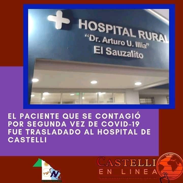 Este miércoles 26 de agosto a las 20 hs aproximadamente, el paciente, que pertenece al Personal Policial de esa localidad, quién se encontraba internado hospital de El Sauzalito en el Sector COVID, fué derivado al Nosocomio de Castelli, conforme lo dispuesto por el medico de Turno Dr. Miguel Figueredo, con diagnostico de «SINDROME FEBRIL MÁS COVID», vale recordar que sorpresivamente se trata de un paciente que ya presentó Covid-19 positivo y fué dado de alta médica, que volvió a infectarse a los tres meses con coronavirus.
