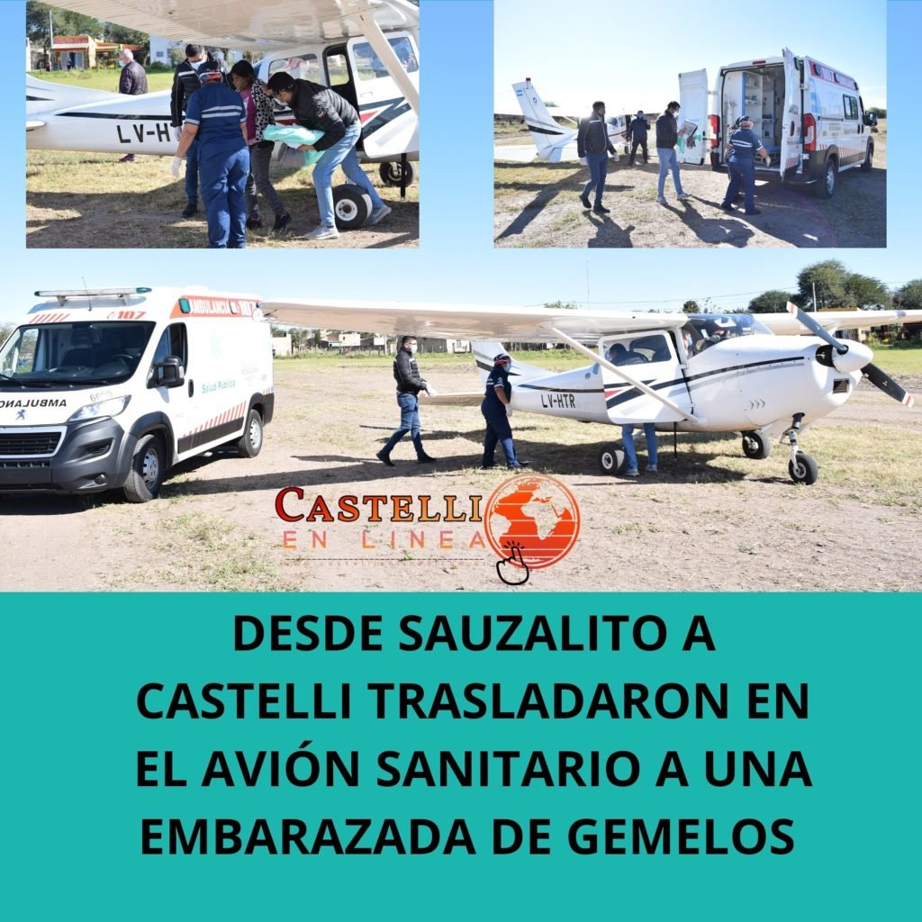 Trasladaron una embarazada de gemelos en avión Sanitario desde El Sauzalito hasta el hospital del Bicentenario de Castelli.