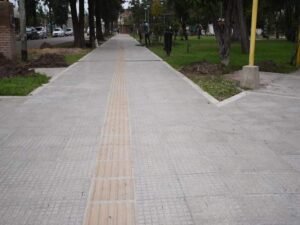 Desde que se inició la obra y hasta la actualidad se han quitado las viejas losas de las veredas, pasillos y centro, limpieza de escombros y carga de hormigón, se colocó mosaico granítico y mosaico táctiles en cumplimiento a la reglamentación establecida para personas no videntes.