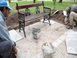 En este contexto, teniendo en cuenta que la Plaza Independencia siempre fue uno de los espacios públicos más concurridos por los vecinos, se continúa avanzando con las tareas de mano de obra municipal, ya que los primeros desembolsos se utilizaron en acopio de materiales por la gran inflación que hace ver devaluados los presupuestos presentados al inicio del Convenio, por otra parte y tratando de generar oportunidades de trabajo contratando mano de obra local, se realizaron colocaciones de mosaicos, que deberá continuarse por administración municipal de no contar con el faltante adeudado por Nación.