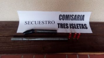 Posterior a esto, los uniformados procedieron a la demora del joven de 29 años del Barrio Federal, encontrándole a este sujeto un arma de fabricación cacera “tumbera” con tres cartuchos PG calibre 32 N° 5 marca Fiocchi de caza.