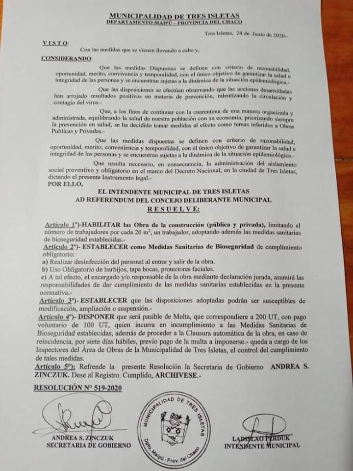 *Queda a cargo de los inspectores del Área de Comercio y Tránsito de la Municipalidad de Tres Isletas el control del cumplimiento de las medidas mencionadas