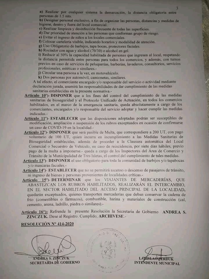 TRES ISLETAS: NUEVA RESOLUCIÓN PARA RUBROS NO EXCEPTUADOS