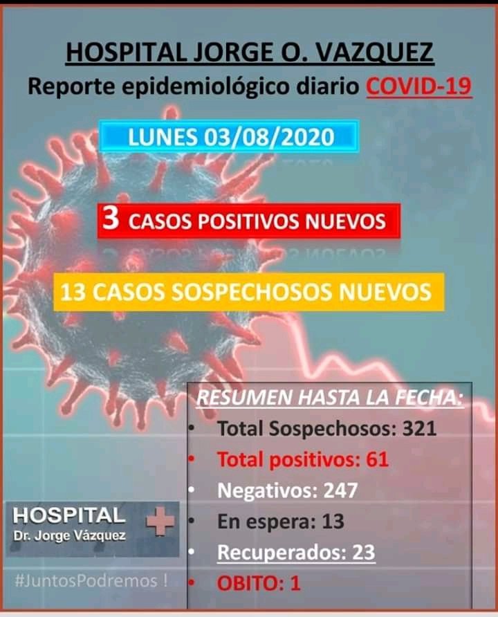 38 Activos de un total de 61 casos con 23 recuperados y 1 fallecido.