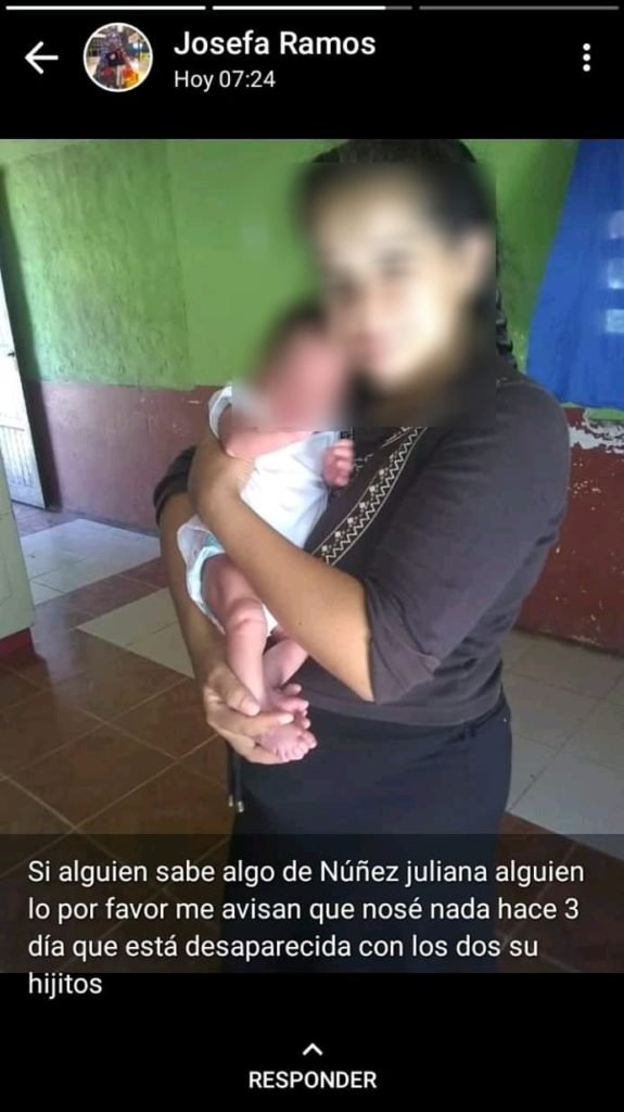 Se trata de Juliana Nuñez de 18 años quien estaba desaparecida desde el lunes pasado, junto a sus dos hijos, uno de 3 años y un bebé de 1 mes.