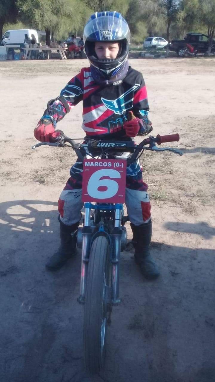 Marcos de los Santos comenzó a correr en el Campeonato Chaqueño de Motociclismo cuando tan sólo tenía 6 años en la categoría Minimotos y a los 8 se consagró campeón.