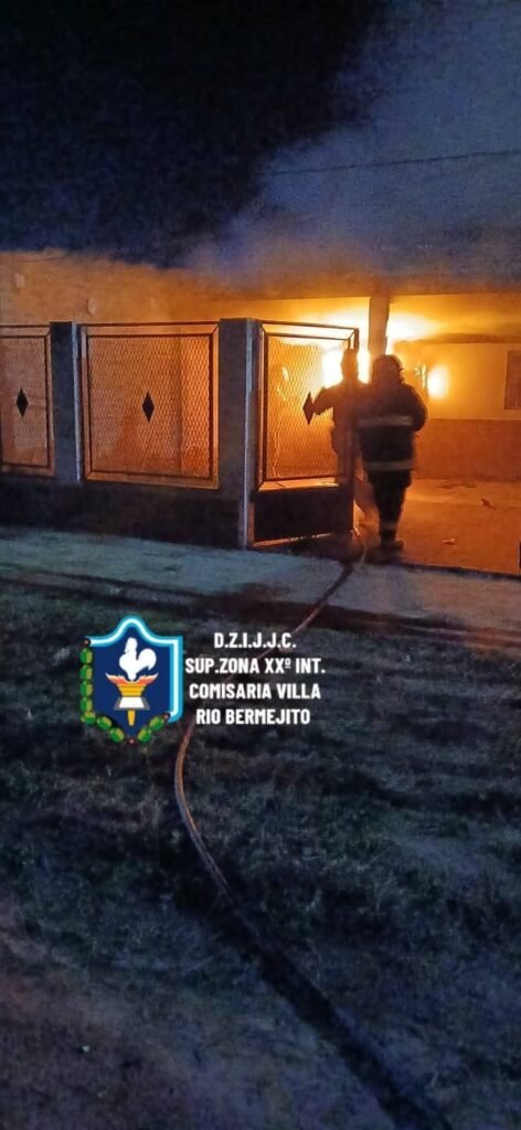 Un incendio de gran magnitud consumió una vivienda en la localidad de Villa Río Bermejito en el barrio Oro Azul, dejando a una mujer sin hogar y causando daños en la propiedad vecina. El siniestro, originado por una falla eléctrica en un aire acondicionado, movilizó a bomberos voluntarios y vecinos para sofocar las llamas.