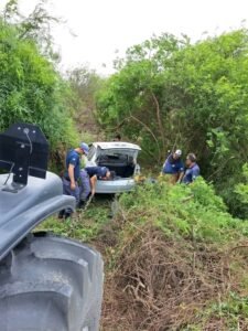 Se contó con la colaboración del Consorcio Caminero N° 79 La Rinconada, debiéndose utilizar un tractor para extraer el vehículo que había quedado incrustado prácticamente entre las malezas.