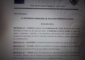 A raíz del Papelón protagonizado por el Concejo Deliberante de Villa Río Bermejito se produce el Primer Veto de Ordenanza de la historia de la localidad. Cabe recordar
