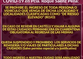 Tras conocerse el caso positivo de COVID-19 en Saenz Peña el Comité de Emergencia Sanitaria ha decidido prohibir el ingreso de personas y vehículos provenientes de esa