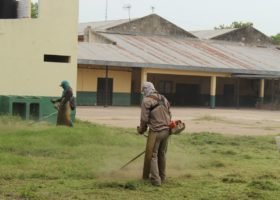 En la mañana de hoy, personal de la Subsecretaría de Relaciones con la Comunidad lleva adelante el desmalezado y limpieza del predio de la E.E.S. N° 184.El municipio