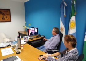 El Intendente Pio Sander junto a la Secretaria de Obras Públicas Arq. Natalia Aguilar, mantuvieron una reunión vía ZOOM con Lucas Pagliero Subsecretario de Descentralización Territorial del Ministerio