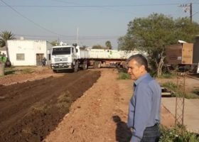 Los trabajos fueron inspeccionados por el Intendente Nievas a primera hora de la mañana. Se llevan a cabo el enripiado de calles en diferentes sectores de la ciudad.