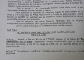 VISTO: La Marcha de Mujeres Originarias de la Provincia del Chaco, previsto para el día 8 de marzo del corriente año en la ciudad de Resistencia; Y CONSIDERANDO: